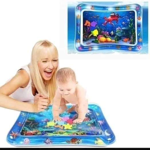 Configura la alfombra de agua del bebé simplemente infla el anillo exterior y llena la parte interior con agua.