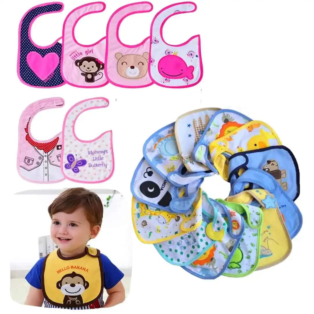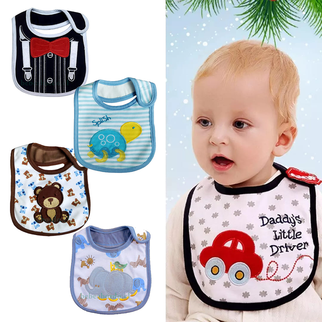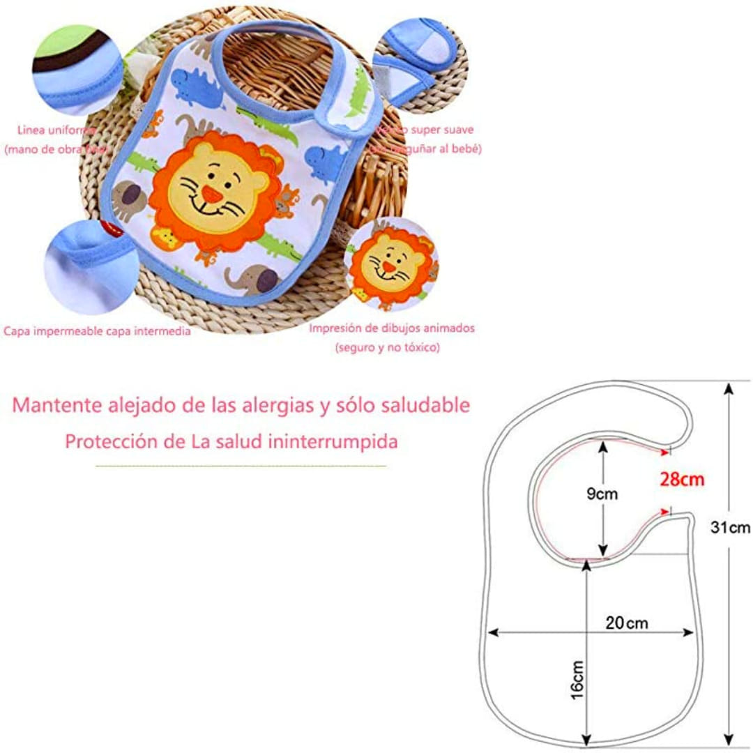 Los baberos de Algodón absorbentes, tienen 3 capas de tela: La primera capa permite que tu bebé luzca un hermoso diseño con una tela de algodón suave, la capa intermedia es impermeable que lo protege de la humedad y la tercera capa usa una suave tela de algodón que mantendrá muy séquito a tu bebé.