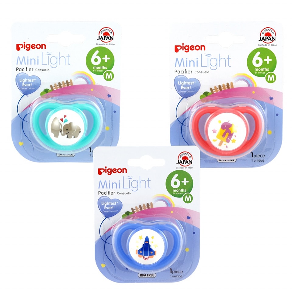 Los chupetes Mini Light de PIGEON están hechos con la más suave silicona, con una forma que se adapta al canal de succión del bebé.