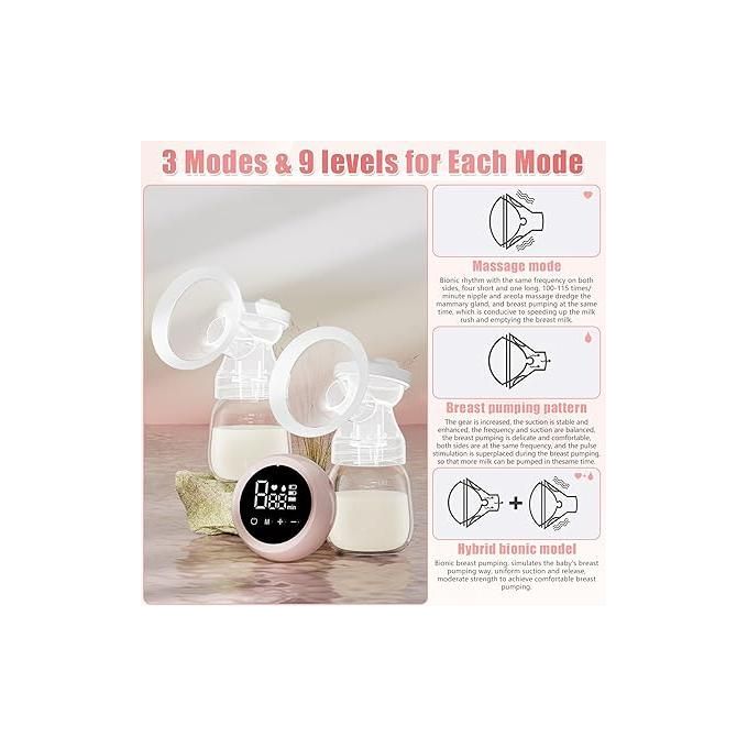 Extractor de leche eléctrico doble portátil con 2 modos y 9 niveles, sin dolor, ultra silencioso