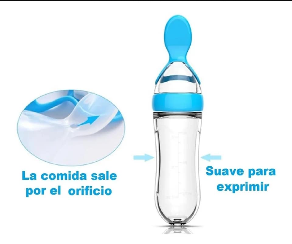 Es una Mamadera que posee una cuchara 100% silicona, con una tapa medidora en un cuerpo de silicona, lo que la diferencia de otras mamaderas, ya que con esta podrás oprimir y alimentar a tu bebe controlando la cantidad que sale de la misma. ideal para pures, yogur, leche, papillas sopas o jugos.