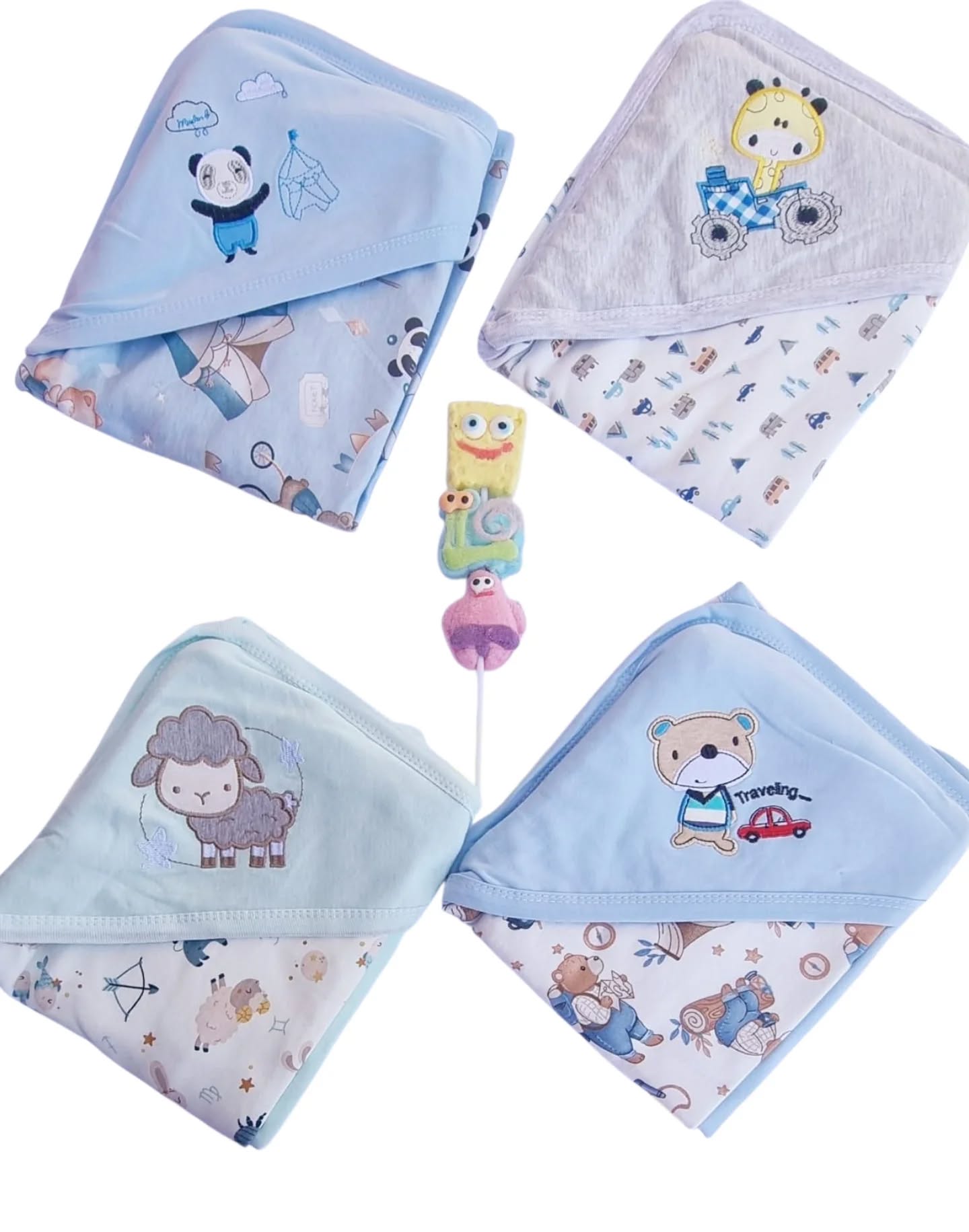 Esta manta esta diseñada para cobijar al bebe , ocuparlo de toalla o simplemente taparlo , el material es de muy buena calidad , doble capa ambas de algodón por un lado liso y el otro un hermoso diseño !!
