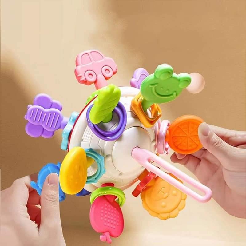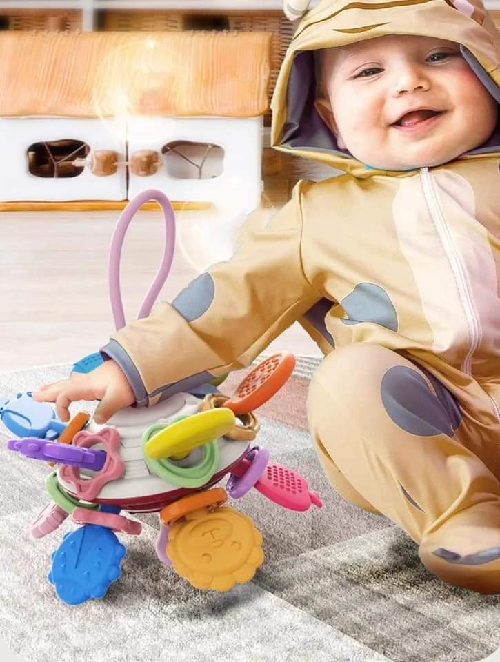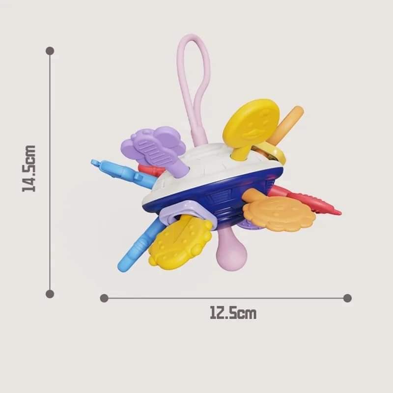 ¡Diversión en todas las direcciones! Este mordedor sonajero giratorio mantiene a tu bebé entretenido con sus múltiples texturas y sonidos cautivadores. El diseño de platillo 360° permite que pequeñas manos lo exploren desde cualquier ángulo, estimulando la coordinación y los sentidos. Perfecto para aliviar las encías durante la dentición mientras desarrolla habilidades motoras. Un juguete versátil que crece con tu bebé, combinando seguridad, aprendizaje y diversión sin fin.