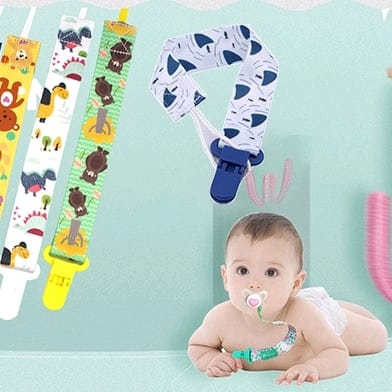 Este set contiene 3 porta chupete con clip para bebés. El clip es de fácil enganche a la ropa del bebé o cualquier lugar con tela y la pinza es de material de plástico.