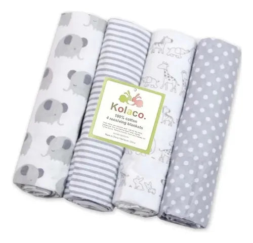 Cada set contiene 4 Mantas de algodón tipo franela de diferentes diseños