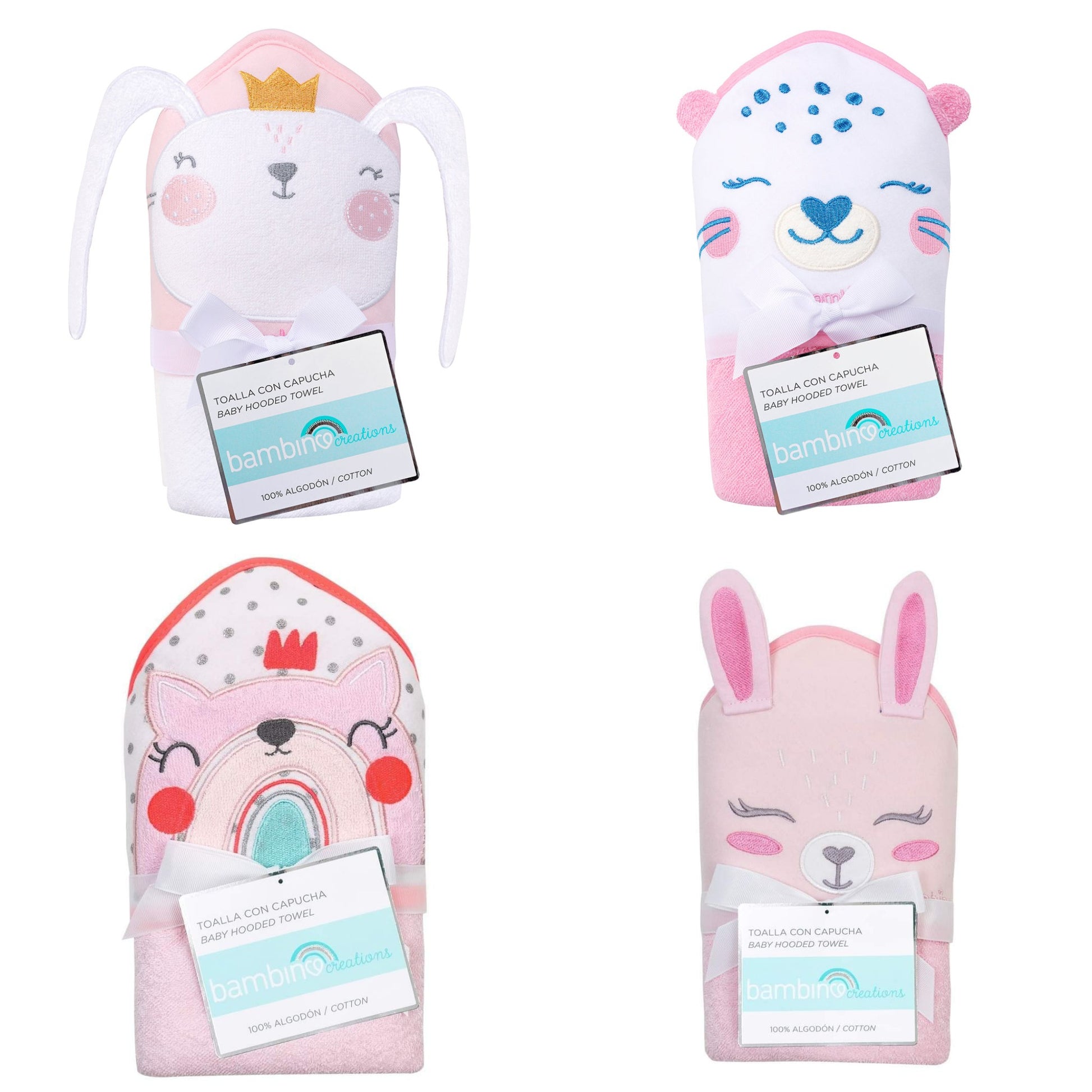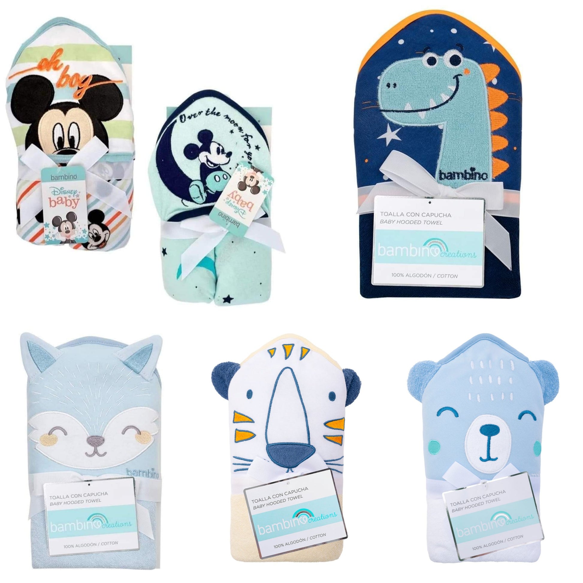 Para la hora del baño las toallas Bambino son las mejores. 100 % algodón, súper suaves y gruesas. Muy absorbentes para mantener abrigadito y cómodo a tu bebé. Su diseño es cautivador para que tu bebé se vea hermoso.